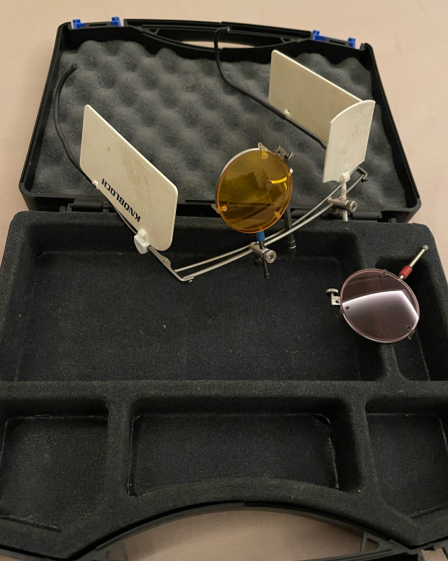 Knowbloch K1 frame with two coloured lenses and side blinders